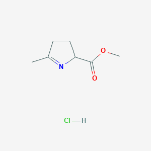 The synthesis of methyl 5-methyl-3,4-dihydro-2H-pyrrole-2-carboxylate hydrochloride typically involves the cyclization of appropriate precursors under acidic conditions. One common method involves the reaction of a suitable amine with an ester, followed by cyclization to form the pyrrole ring. The reaction conditions often include the use of a strong acid such as hydrochloric acid to facilitate the cyclization process .