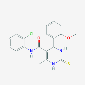 The synthesis of N-(2-chlorophenyl)-4-(2-methoxyphenyl)-6-methyl-2-sulfanylidene-1,2,3,4-tetrahydropyrimidine-5-carboxamide typically involves multi-step organic reactions. The process begins with the preparation of the key intermediates, which are then subjected to various reaction conditions to form the final compound. Common synthetic routes include: