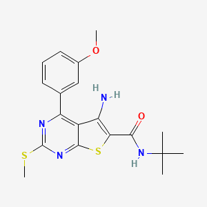 5-amino-N-tert-butyl-4-(3-methoxyphenyl)-2-methylsulfanylthieno[2,3-d]pyrimidine-6-carboxamide | |