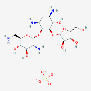 (2R,3S,4R,5R,6R)-5-amino-2-(aminomethyl)-6-[(1R,2R,3S,4R,6S)-4,6-diamino-2-[(2S,3R,4S,5R)-3,4-dihydroxy-5-(hydroxymethyl)oxolan-2-yl]oxy-3-hydroxycyclohexyl]oxyoxane-3,4-diol;sulfuric acid | |