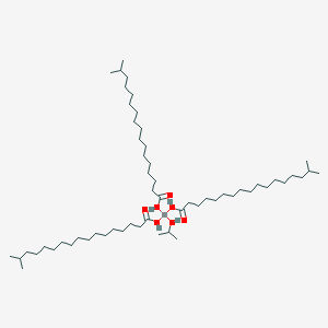 Titanium triisostearoylisopropoxide (CAS No. 61417-49-0) is an organotitanate compound with a unique molecular structure that makes it highly effective as a coupling agent, surface modifier, and catalyst precursor.[1] Its chemical makeup, featuring a central titanium atom bonded to three bulky isostearoyl groups and one isopropoxy group, allows it to act as a molecular bridge between inorganic and organic materials. This property is of significant interest in materials science, particularly in the development of advanced composites and in modifying the surface properties of materials for specialized applications, including those in the biomedical field.[1][2] This technical guide provides a comprehensive overview of the physical and chemical properties, synthesis, and key reactions of this compound, with a focus on its relevance to researchers, scientists, and professionals in drug development.