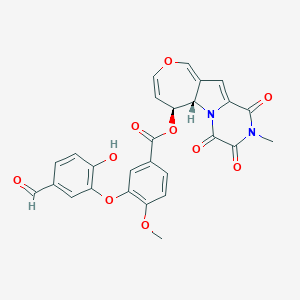 CN1C(=O)C2=CC3=COC=C[C@@H]([C@H]3N2C(=O)C1=O)OC(=O)C4=CC(=C(C=C4)OC)OC5=C(C=CC(=C5)C=O)O