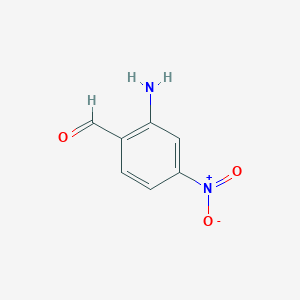 This compound is an organic compound that appears as an orange to red solid.[1] It is characterized by the presence of an amino group, a nitro group, and an aldehyde functional group attached to a benzene ring. These functional groups contribute to its specific chemical reactivity and physical properties. The compound should be stored under an inert atmosphere (nitrogen or argon) at 2–8 °C.[1]