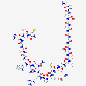 CC(C)CC(C(=O)NC(CCSC)C(=O)N)NC(=O)C(CC1=CN=CN1)NC(=O)CNC(=O)C(C(C)C)NC(=O)C(C)NC(=O)C(CC2=CNC3=CC=CC=C32)NC(=O)C(CC4=CN=CN4)NC(=O)C(CC(=O)N)NC(=O)CNC(=O)C(CCCNC(=N)N)NC(=O)C5CCCN5C(=O)C(CC6=CC=C(C=C6)O)NC(=O)C(CCSC)NC(=O)C(CCCCN)NC(=O)C(C)NC(=O)C(CC(C)C)NC(=O)C(C(C)C)NC(=O)C(C(C)O)NC(=O)CNC(=O)CNC(=O)CNC(=O)C(C(C)C)NC(=O)C(CO)NC(=O)C(C(C)C)NC(=O)C7CCCN7C(=O)C(C)N | |