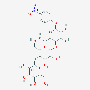 4-Nitrophenyl beta-D-cellotrioside plays a crucial role in biochemical reactions as a substrate for endoglucanases and cellulose biohydrolases. These enzymes hydrolyze the compound to release 4-nitrophenol, which can be detected spectrophotometrically. The interaction between this compound and these enzymes is essential for studying enzyme kinetics and activity. The compound’s ability to produce a measurable color change upon hydrolysis makes it an invaluable tool for enzyme assays.