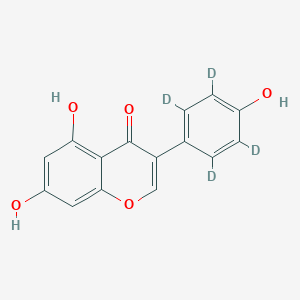 This compound is a deuterated form of genistein, a naturally occurring isoflavone found predominantly in soybeans and other legumes. The four hydrogen atoms on the phenyl ring of genistein are replaced with deuterium atoms, resulting in a molecule that is chemically identical to genistein but with a higher molecular weight. This key characteristic makes this compound an ideal internal standard for the accurate quantification of genistein in complex biological matrices using mass spectrometry.