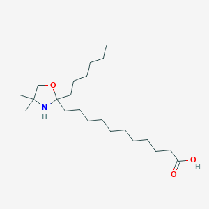 11-(2-hexyl-4,4-dimethyl-1,3-oxazolidin-2-yl)undecanoic acid (CAS No. 106264-99-7) is a compound that has garnered attention in biochemical research due to its potential biological activities. This article explores its chemical properties, biological mechanisms, and relevant studies that highlight its activity.