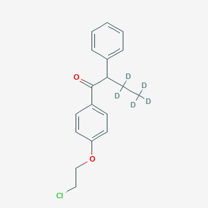 The mechanism of action of 1-[4-(2-Chloroethoxy)phenyl]-2-(ethyl-d5)-2-phenylethanone involves its interaction with specific molecular targets. The chloroethoxy group can form covalent bonds with nucleophilic sites on proteins or enzymes, leading to inhibition or modification of their activity . The ethyl-d5 group provides stability and resistance to metabolic degradation, enhancing the compound’s efficacy in research applications .