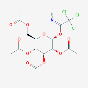 The mechanism of action of 2,3,4,6-Tetra-O-acetyl-alpha-D-glucopyranosyl Trichloroacetimidate involves the formation of glycosidic bonds. The trichloroacetimidate group acts as a leaving group, facilitating the nucleophilic attack by an alcohol or other nucleophile on the anomeric carbon of the glucose moiety. This results in the formation of a glycosidic bond, with the trichloroacetimidate group being replaced by the nucleophile .