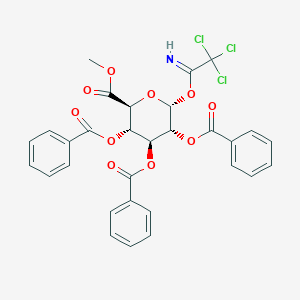 The synthesis of 2,3,4-Tri-O-benzoyl-alpha-D-glucuronic acid methyl ester, trichloroacetimidate typically involves the protection of hydroxyl groups followed by the introduction of the trichloroacetimidate group. One common method starts with D-glucuronic acid methyl ester, which is then benzoylated to protect the hydroxyl groups.