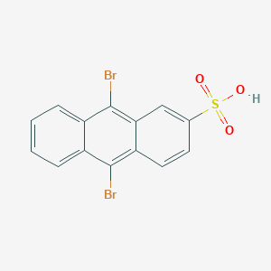 Research into 9,10-dibromoanthracene-2-sulfonic acid and its derivatives has established its significance primarily as a specialized tool in organic synthesis and photophysical studies. cymitquimica.compharmaffiliates.com A key contribution of this compound lies in its water-solubility, a property imparted by the sulfonic acid group, which makes it particularly useful for studies in aqueous environments. thieme-connect.com One of its most notable applications is as a fluorescent probe and triplet-state reporter. researchgate.net Specifically, it has been effectively used to detect and quantify the formation of triplet-state molecules, such as triplet acetone (B3395972), which are typically inefficient emitters of light. researchgate.net In these applications, the sulfonic acid derivative acts as a triplet carbonyl counter, accepting energy from the excited species and producing a measurable chemiluminescent signal, thereby confirming the nature of the main emitter. researchgate.net
