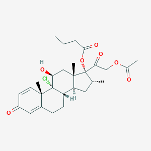 The three-dimensional arrangement of atoms in this compound is complex and crucial for its interaction with biological receptors. The molecule contains several chiral centers, which are carbon atoms bonded to four different groups, resulting in stereoisomers. The precise spatial orientation, or absolute stereochemistry, is defined by its systematic IUPAC (International Union of Pure and Applied Chemistry) name: [(8S,9R,10S,11S,13S,14S,16R,17R)-17-(2-acetyloxyacetyl)-9-chloro-11-hydroxy-10,13,16-trimethyl-3-oxo-6,7,8,11,12,14,15,16-octahydrocyclopenta[a]phenanthren-17-yl] butanoate. nih.gov This nomenclature specifies the configuration (R or S) at each chiral center, ensuring a single, specific stereoisomer.