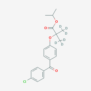 This compound is structurally identical to fenofibrate, with the exception of six hydrogen atoms on the isopropyl moiety being replaced by deuterium atoms. This isotopic substitution results in a higher molecular weight, which allows for its differentiation from the unlabeled drug in mass spectrometric analysis.