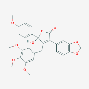 COC1=CC=C(C=C1)C2(C(=C(C(=O)O2)C3=CC4=C(C=C3)OCO4)CC5=CC(=C(C(=C5)OC)OC)OC)O | |
