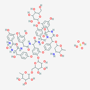 methyl (2R,18R,19S,22R,34S,37R,40R,52S)-22-amino-2-[(2S,5R,6S)-4-amino-5-hydroxy-6-methyloxan-2-yl]oxy-64-[(2S,3R,4S,5S,6R)-3-[(2R,3S,5S,6R)-4,5-dihydroxy-6-(hydroxymethyl)-3-[(2S,3S,4R,5R)-3,4,5-trihydroxyoxan-2-yl]oxyoxan-2-yl]oxy-4,5-dihydroxy-6-[[(2S,3S,4S,5S)-3,4,5-trihydroxy-6-methyloxan-2-yl]oxymethyl]oxan-2-yl]oxy-18,26,31,44,49-pentahydroxy-30-methyl-21,35,38,54,56,59-hexaoxo-47-[(2S,4S,5S,6R)-3,4,5-trihydroxy-6-(hydroxymethyl)oxan-2-yl]oxy-7,13,28-trioxa-20,36,39,53,55,58-hexazaundecacyclo[38.14.2.23,6.214,17.219,34.18,12.123,27.129,33.141,45.010,37.046,51]hexahexaconta-3(66),4,6(65),8,10,12(64),14(63),15,17(62),23(61),24,26,29(60),30,32,41(57),42,44,46(51),47,49-henicosaene-52-carboxylate;sulfuric acid |