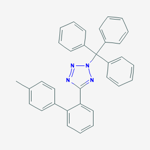 The synthesis of this compound typically involves the reaction of trityl azide with appropriate benzene derivatives. The tetrazole moiety is crucial for the biological activity of this compound, as tetrazoles are known to exhibit diverse pharmacological effects. The synthetic pathway generally follows these steps: