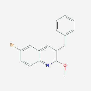 This compound is a heterocyclic aromatic compound. Its structure features a quinoline (B57606) core substituted with a methoxy (B1213986) group at the 2-position, a benzyl (B1604629) group at the 3-position, and a bromine atom at the 6-position. At room temperature, it typically presents as a white to off-white or pale yellow crystalline solid.