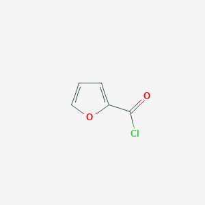 2-Furoyl chloride (CAS No. 527-69-5), the acyl chloride derivative of 2-furoic acid, is a highly reactive and versatile intermediate pivotal to modern organic synthesis.[1][2] Its furan moiety, a five-membered aromatic heterocycle containing oxygen, imparts unique electronic properties and conformational rigidity, making it a privileged scaffold in medicinal chemistry and materials science. This guide provides an in-depth exploration of the physical properties, chemical behavior, and practical applications of this compound, tailored for researchers, chemists, and drug development professionals. We will delve into not just the "what" but the "why" of its reactivity and provide field-proven insights into its handling and application. Its significance is underscored by its role as a key intermediate in the synthesis of numerous pharmaceuticals, including the anti-inflammatory corticosteroid Mometasone Furoate and the antihypertensive agent Prazosin, as well as various agrochemicals.[3][4]