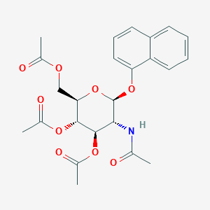 The compound [(2R,3S,4R,5R,6S)-5-acetamido-3,4-diacetyloxy-6-naphthalen-1-yloxyoxan-2-yl]methyl acetate is a complex organic molecule that has garnered attention in various scientific research applications. This article will explore its applications in medicinal chemistry, biochemistry, and materials science, supported by comprehensive data tables and documented case studies.
