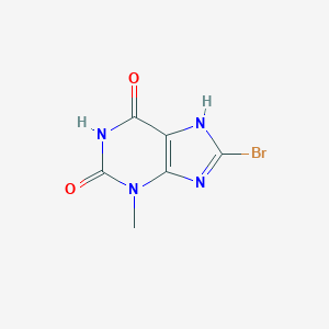 This compound is a substituted xanthine, a purine base found in various biological systems. The core structure consists of a fused pyrimidinedione and imidazole ring system. Key structural features include a bromine atom at the 8-position and a methyl group at the 3-position of the purine core.