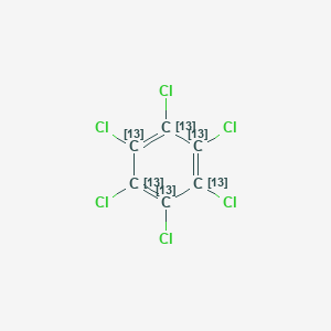 The use of stable isotope-labeled compounds, such as this compound, is a cornerstone of modern environmental toxicology and health risk assessment. amerigoscientific.com These compounds, in which one or more atoms are replaced by a heavy isotope (like Carbon-13), are chemically identical to their unlabeled counterparts but are distinguishable by mass spectrometry. medchemexpress.cn This property allows them to be used as tracers or internal standards, providing a high degree of accuracy and precision in quantitative analyses. sigmaaldrich.com In pharmacokinetic and pharmacodynamic studies, this compound is instrumental for tracing the fate of hexachlorobenzene (HCB) in biological systems and for accurately quantifying its concentration in complex matrices like tissues and fluids. musechem.com
