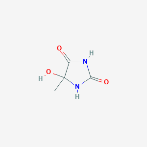 This compound, also known as 5-hydroxy-5-methylimidazolidine-2,4-dione, is a derivative of hydantoin. The core structure consists of a five-membered imidazolidine ring with two carbonyl groups at positions 2 and 4. A methyl group and a hydroxyl group are attached to the carbon at position 5.
