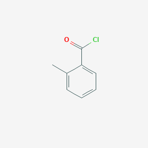 This compound, also known as 2-methylbenzoyl chloride, is a significant chemical intermediate in the field of organic synthesis.[1][2][3] With the chemical formula C₈H₇ClO, this compound is a member of the acyl halide family and is characterized by a benzoyl chloride core with a methyl group at the ortho position.[4] Its high reactivity, stemming from the electrophilic carbonyl carbon, makes it a versatile reagent for introducing the o-toluoyl group into various molecules.[3] This guide provides a comprehensive overview of its chemical properties, structure, reactivity, and key experimental protocols for professionals in research and drug development.