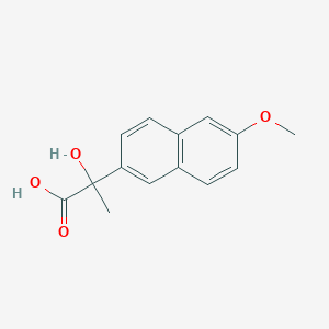 The primary mechanism of action of 2-Hydroxy-2-(6-methoxy-2-naphthyl)propionic acid involves the inhibition of cyclooxygenase enzymes (COX-1 and COX-2). By inhibiting these enzymes, the compound reduces the synthesis of prostaglandins, which are mediators of inflammation, pain, and fever . This inhibition leads to its anti-inflammatory, analgesic, and antipyretic effects.