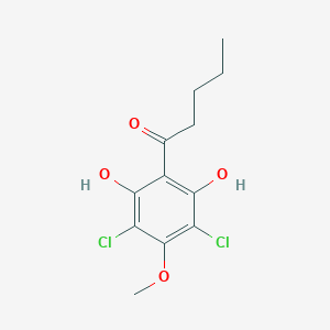 1-(3,5-Dichloro-2,6-dihydroxy-4-methoxyphenyl)pentan-1-one is a chemical compound known for its unique structure and properties. It is a phenolate anion resulting from the removal of a proton from one of the hydroxy groups of the parent compound. This compound is significant in various scientific research fields due to its differentiation-inducing properties and its role as a signaling molecule .