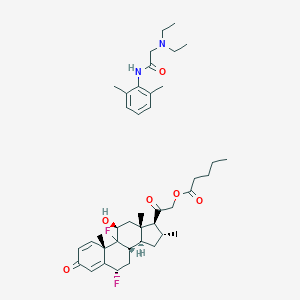 Pharmacological Perspective: this compound's formulation represents a sophisticated pharmacological approach combining two distinct drug classes. Diflucortolone valerate, a potent topical corticosteroid rated as Class 3 "potent" (100-150 times more potent than hydrocortisone) in the New Zealand topical steroid classification system, provides anti-inflammatory effects by suppressing inflammatory mediators. Research indicates that when applied to affected tissues, diflucortolone valerate significantly reduces capillary permeability, inhibits leukocyte migration, and suppresses mediator release. Complementing this, lidocaine acts on the nerve membrane, causing reversible blockade of impulse propagation by preventing the inward movement of sodium ions, thus providing local anesthesia.
