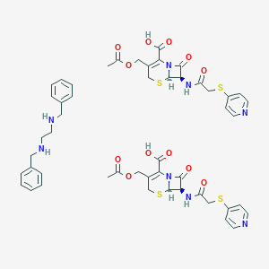 CC(=O)OCC1=C(N2[C@@H]([C@@H](C2=O)NC(=O)CSC3=CC=NC=C3)SC1)C(=O)O.CC(=O)OCC1=C(N2[C@@H]([C@@H](C2=O)NC(=O)CSC3=CC=NC=C3)SC1)C(=O)O.C1=CC=C(C=C1)CNCCNCC2=CC=CC=C2 | |