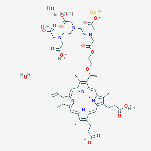 gallium;3-[13-[1-[2-[2-[2-[2-[bis(carboxylatomethyl)amino]ethyl-(carboxylatomethyl)amino]ethyl-(carboxylatomethyl)amino]acetyl]oxyethoxy]ethyl]-18-(2-carboxylatoethyl)-8-ethenyl-3,7,12,17-tetramethylporphyrin-21,24-diid-2-yl]propanoate;hydron;indium-111(3+);hydroxide;hydrate | |