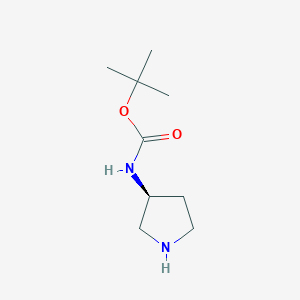 This compound, also known as tert-butyl (S)-pyrrolidin-3-ylcarbamate, is a chiral building block widely utilized in the synthesis of pharmaceutical compounds. The Boc (tert-butoxycarbonyl) protecting group on the amino function allows for selective chemical transformations at other positions of the pyrrolidine (B122466) ring.