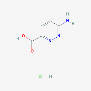 The synthesis of 6-amino-3-pyridazinecarboxylic acid hydrochloride typically involves regioselective functionalization of the pyridazine ring. A common approach is to start with 3-pyridazinecarboxylic acid (CAS 2164-61-6) , followed by nitration at the 6-position and subsequent reduction to introduce the amino group. The hydrochloride salt is formed via acidification with HCl.