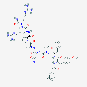 CC[C@@H](C(=O)N1CCC[C@H]1C(=O)N[C@@H](CCCN=C(N)N)C(=O)N[C@@H](CCCN=C(N)N)C(=O)N)NC(=O)[C@H](CC(=O)N)NC(=O)[C@H](C(C)C)NC(=O)[C@H](CC2=CC=CC=C2)NC(=O)[C@@H](CC3=CC=C(C=C3)OCC)NC(=O)CC45CC6CC(C4)CC(C6)C5 | |