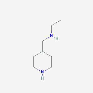 N-(piperidin-4-ylmethyl)ethanamine is a useful reagent for the preparation of biologically active small molecules.[1] A common and efficient method for its synthesis is the reductive amination of a protected piperidine-4-carbaldehyde with ethylamine, followed by deprotection. The presence of two secondary amine groups (one on the ring and one on the side chain) allows for differential functionalization, making it a versatile intermediate in combinatorial chemistry and drug discovery.