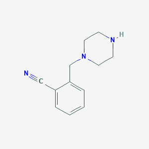 This compound, also known as 2-(piperazin-1-ylmethyl)benzonitrile, is a chemical compound with the molecular formula C₁₂H₁₅N₃ and a molecular weight of 201.27 g/mol .[1][2][3] It typically presents as a white to off-white or yellow solid and is soluble in organic solvents.[1] The presence of the piperazine core suggests potential for psychoactive and therapeutic properties, while the cyanobenzyl group may enhance its interaction with biological targets.[1]