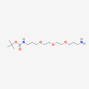 This compound is a versatile chemical tool featuring a terminal primary amine (-NH2) and a tert-butyloxycarbonyl (Boc) protected amine, separated by a hydrophilic 3-unit polyethylene (B3416737) glycol (PEG) spacer. This architecture allows for a controlled, sequential conjugation strategy, making it an invaluable component in the modular assembly of complex molecules. The PEG chain enhances the solubility and can improve the pharmacokinetic properties of the final conjugate.