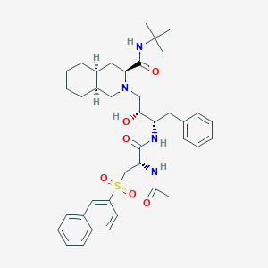 3-Isoquinolinecarboxamide, 2-(3-((2-(acetylamino)-3-(2-naphthalenylsulfonyl)-1-oxopropyl)amino)-2-hydroxy-4-phenylbutyl)-N-(1,1-dimethylethyl)decahydro-, (3S-(2(2S*,3R*(R*)),3alpha,4abeta,8abeta))- is a complex organic compound with potential applications in various fields such as medicinal chemistry, biochemistry, and industrial chemistry. This compound features a unique structure that includes isoquinoline, naphthalenylsulfonyl, and phenylbutyl groups, making it a subject of interest for researchers.