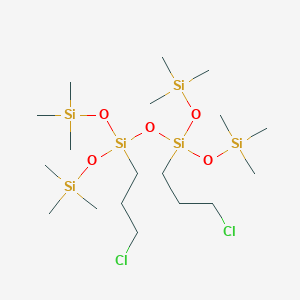 The mechanism of action of 3-Chloropropyl-[3-chloropropyl-bis(trimethylsilyloxy)silyl]oxy-bis(trimethylsilyloxy)silane involves the interaction of its functional groups with various molecular targets. The chloropropyl groups can form covalent bonds with nucleophiles, while the trimethylsilyloxy groups can undergo hydrolysis and condensation reactions. These interactions result in the modification of surfaces and the formation of new materials with unique properties.