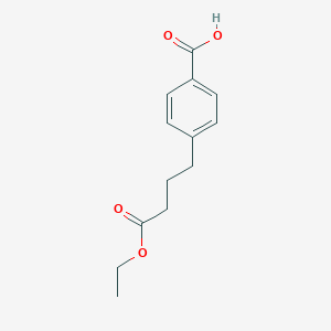 The synthesis of 4-(4-Ethoxy-4-oxobutyl)benzoic acid typically involves the reaction of benzoic acid derivatives with ethoxy-substituted butyl groups under controlled conditions. One common method involves the esterification of benzoic acid with ethoxybutanol in the presence of a strong acid catalyst . Industrial production methods may involve similar synthetic routes but are optimized for large-scale production, ensuring high yield and purity.