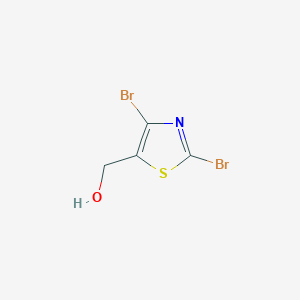 This compound is a highly functionalized heterocyclic compound that has garnered significant attention as a versatile building block in medicinal chemistry and materials science. Its structure, featuring a thiazole core, two bromine atoms at the C2 and C4 positions, and a primary alcohol at the C5 position, offers multiple reactive sites for strategic chemical modification. The thiazole ring is a well-established "privileged structure" in drug discovery, present in numerous FDA-approved therapeutic agents, which imparts favorable pharmacokinetic properties and diverse biological activities.[1] The bromine atoms serve as convenient handles for cross-coupling reactions, enabling the introduction of various substituents, while the hydroxymethyl group allows for oxidation, esterification, or etherification to build more complex molecular architectures.[1][2] This guide provides a comprehensive overview of the chemical properties, synthesis, reactivity, and applications of this compound for researchers, scientists, and drug development professionals.