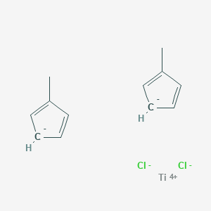 The mechanism of action of dichlorobis(methyl-pi-cyclopentadienyl)titanium involves the coordination of the titanium center with various substrates. The methyl-pi-cyclopentadienyl ligands stabilize the titanium center, allowing it to participate in various catalytic cycles. The compound can activate small molecules, such as olefins and alkynes, facilitating their transformation into more complex products. The molecular targets and pathways involved depend on the specific reaction and substrate used .