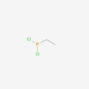 The synthesis of dichlorophosphines, such as this compound, is typically achieved through the reaction of phosphorus trichloride (B1173362) with organometallic reagents like Grignard or organolithium compounds.[2] However, to control the high reactivity and prevent side reactions, alternative methods using organozinc reagents have been developed.[2] A general approach involves the reaction of a corresponding ethylating agent with phosphorus trichloride.