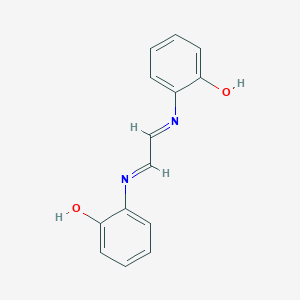 Glyoxalbis(2-hydroxyanil), also known as 2,2'-[ethanediylidenedinitrilo]diphenol, is a Schiff base derivative formed from the condensation of glyoxal and 2-aminophenol. It is a yellow to orange crystalline solid with limited solubility in water but is soluble in organic solvents like ethanol and methanol.[1] This compound is of significant interest in the field of coordination chemistry, where it functions as a tetradentate ligand, forming stable complexes with various transition metal ions. These metal complexes have potential applications in catalysis and materials science. Additionally, its derivatives have been explored for their potential biological activities.