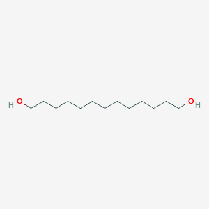 1,13-Tridecanediol is a long-chain aliphatic diol with the chemical formula C13H28O2. As a member of the α,ω-diol family, it possesses hydroxyl groups at both ends of a thirteen-carbon chain. This bifunctional nature imparts unique chemical and physical properties, making it a molecule of interest in various scientific and industrial fields, including cosmetics, polymer synthesis, and potentially as a bioactive lipid. This technical guide provides a comprehensive overview of the core chemical and physical properties of this compound, along with general experimental protocols and a discussion of its potential biological relevance.