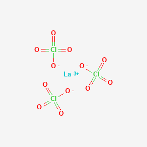 The synthesis of lanthanum(III) perchlorate complexes generally involves reacting the salt with a solution of the desired organic ligand in a suitable solvent. The choice of solvent depends on the solubility of both the lanthanum salt and the ligand. The resulting complex often precipitates from the solution or can be isolated by crystallization.