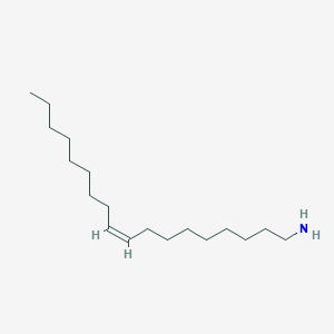 This compound is an organic compound with an 18-carbon chain containing a cis-double bond and a terminal primary amine group.[5] Commercially available this compound often contains impurities, such as the trans isomer (elaidylamine) and other long-chain amines, which can influence reaction outcomes.[2] The key physical and chemical properties of this compound are summarized in the table below.