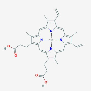 Tin protoporphyrin IX has a wide range of scientific research applications, including its use in chemistry, biology, medicine, and industry. In the medical field, it is used in photodynamic therapy to treat certain types of cancer due to its photosensitivity . In biology, it is studied for its role in inhibiting heme oxygenase and its potential antiviral activity . In the industrial field, it is used in the manufacturing of dyes and pigments .