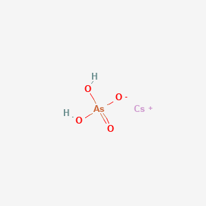 CsH₂AsO₄ is a crystalline inorganic compound with the formula AsCsH₂O₄ and molecular weight 273.84 g/mol . Its structure comprises a dihydrogen arsenate anion ([H₂AsO₄]⁻) bound to a cesium cation (Cs⁺), forming hydrogen-bonded networks in the solid state . Basic characterization methods include: